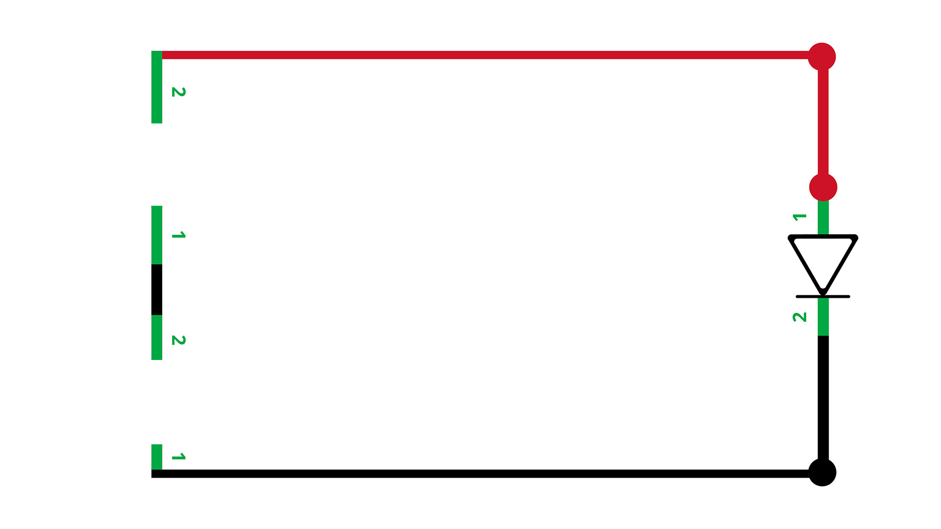 1:18- Parallel connection: Connect the positive end of the red LED to the positive end of the green LED and the negative end of the red LED to the negative end of the green LED